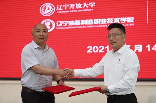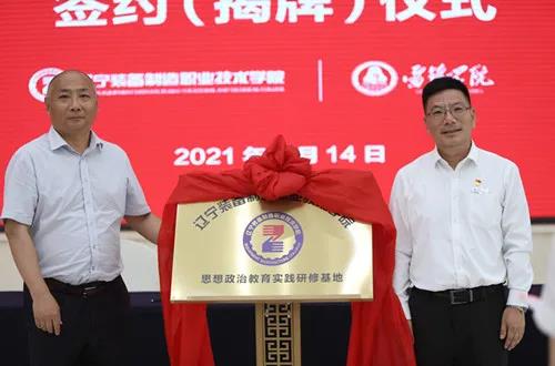 李冬青、陈锡德分别代表辽宁开放大学、辽宁装备制造职业技术学院、雷锋学院签署了《战略合作计划书》,共同为辽宁开放大学、辽宁装备制造职业技术学院思想政治教育实践研修基地揭牌,标志着我校思想政治教育实践研修基地正式落户雷锋学院。