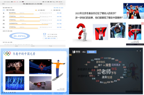 课前,思政课教师通过雨课堂发送冬奥知识小问答,让同学们增进对冬奥会的了解,砥砺奋进力量。课上,思政课教师以冬奥会为抓手,从“冬季奥运会”“2022年北京冬奥会赛事项目”“展示中国文化的魅力”“讲好中国发展的理念”“展现中国精神”五方面展开讲授。冬梦、飞扬、冰墩墩、雪容融、苏翊鸣、谷爱凌等等热点话题与人物成为教师课程中的思政元素,激励同学们从中汲取智慧和力量,努力成长为德智体美劳全面发展的社会主义建设者和接班人。