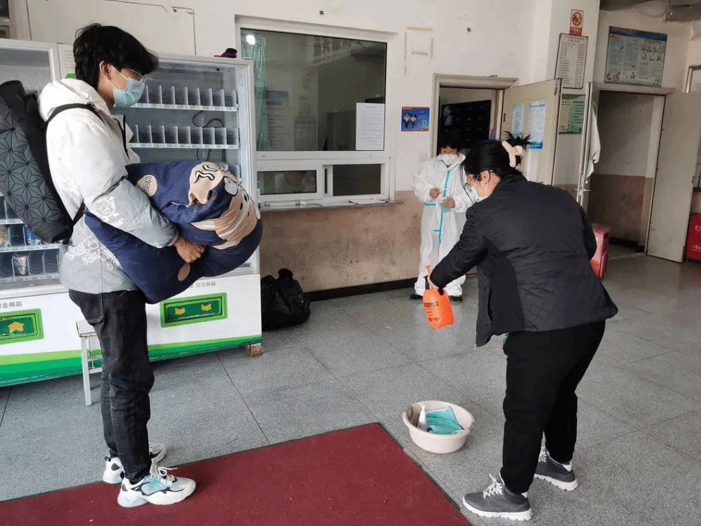 3月30日,学校被紧急通知所有在校生均需核酸检测,检测工作人员21时到达我校后,全校所有学生需连夜按照寝室顺序完成核酸检测。“哎呀,20级会计专业的那个孩子脚被烫伤了,行动不便的她怎么下楼去做核酸啊。”想到这里,工商管理学院辅导员王淼老师马上赶到学生所在寝室,背起学生就奔向核酸检测地点,一路护送学生顺利完成核酸检测,并把学生送到校卫生所对伤口进行了处理。突然,王淼老师感觉自己膝盖一阵刺痛,他才想起来自己有膝关节疼痛这个老毛病。背着学生回寝室的路上,他强忍伤痛,坚持把学生安全送回了寝室。住校十几天来,信息排查,走进寝室倾听同学们的心声,解答同学们的疑问,消除同学们的顾虑……王淼老师平均每天只休息四五个小时。