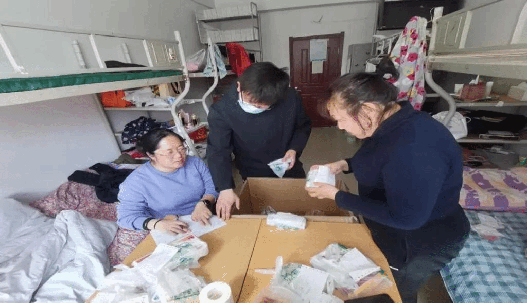 学院辅导员为学生清点药品,亲自送到学生手中