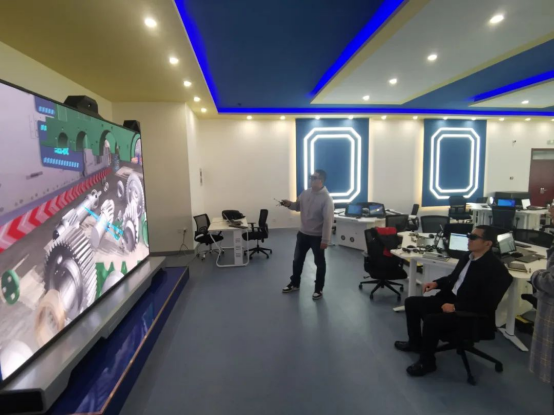 伊焕斌实地考察了智能产线总控室、智能制造车间、增材制造实训室、虚拟仿真专业中心等地,认真观看智能制造产线运行情况,亲身体验虚拟仿真设备应用效果,全面了解学院的教学科研、校企合作及技能大赛情况。