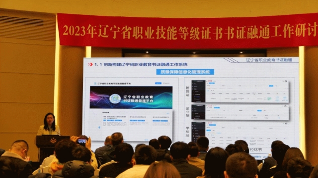 宁春作辽宁省职业技能等级证书书证通融通工作报告,从创新构建辽宁省职业教育书证融通工作系统、领先实施职业技能等级证书书证融通学习成果认定标准、稳步运行全省书证融通工作三个方面详细介绍了书证融通工作的研发、试点、运行情况,并就下一步工作要点作了说明。