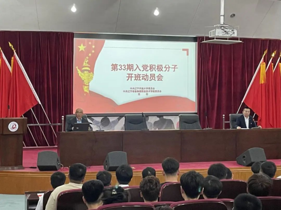 为深入学习贯彻习近平新时代中国特色社会主义思想,从严从实做好党员发展工作,教育引导入党积极分子加深对党的基本知识的认识和理解、提高思想理论水平和政治素养,进一步端正入党动机,5月11日,我校党校第33期入党积极分子培训班在蒲河校区报告厅开班。党委副书记、党校校长任庆国作动员讲话,并讲授开班第一课《中国共产党的初心使命》,教职工、学生入党积极分子近200人参加。开班式由党委组织部部长主持。