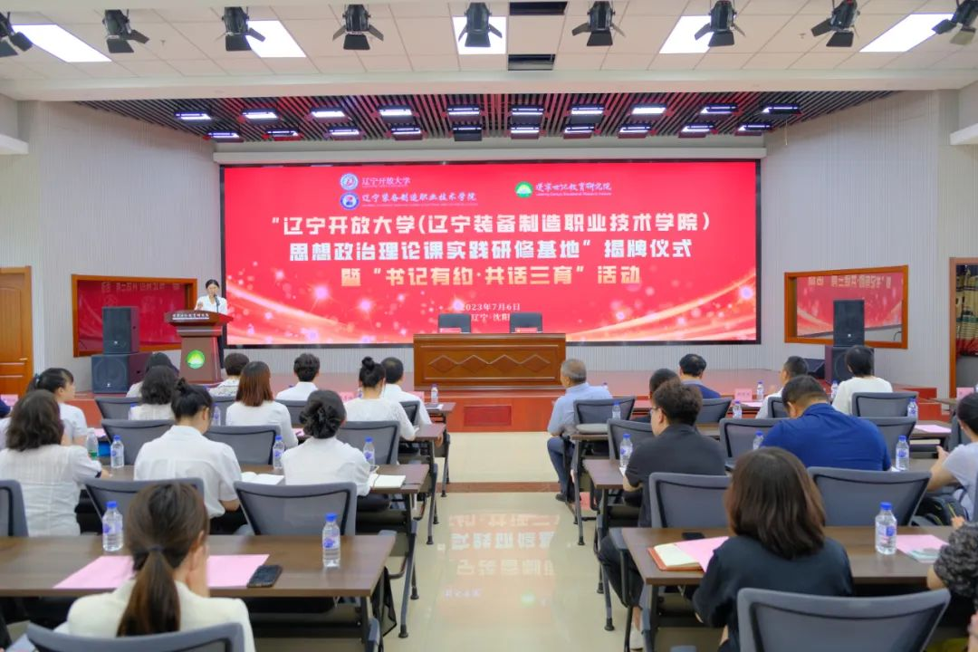 为进一步加强学校党委对思政课建设的全面领导,深入落实校领导联系思政课教师制度,积极打造学校思想政治工作新亮点,马克思主义学院精心筹划了辽宁开放大学(辽宁装备制造职业技术学院)思想政治理论课实践研修基地揭牌仪式暨“书记有约·共话三育”活动。党委书记伊焕斌,副校长吴厚兴,党委宣传部、学生工作处、团委相关人员,辽宁世纪教育研究院董事长张士清,总编闫海涛,推广中心总监周连刚,马克思主义学院全体教师及学生工作处、机械工程学院、汽车工程学院、自动控制工程学院、信息与通信工程学院部分教师代表出席活动。