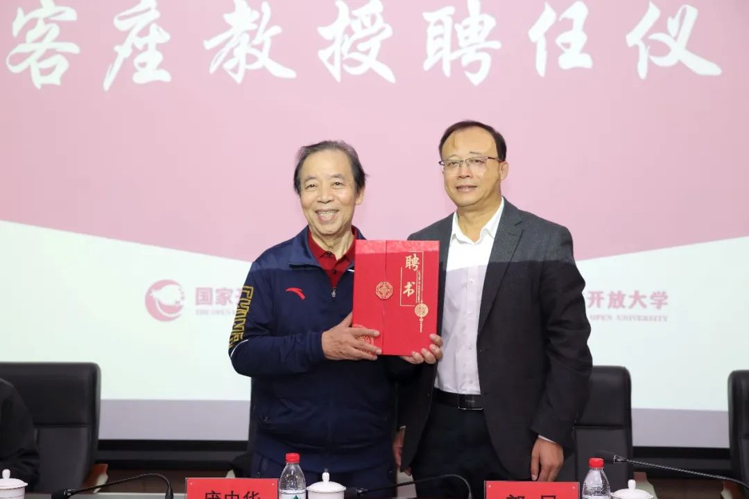 郭民为庞中华颁发辽宁开放大学客座教授聘书。