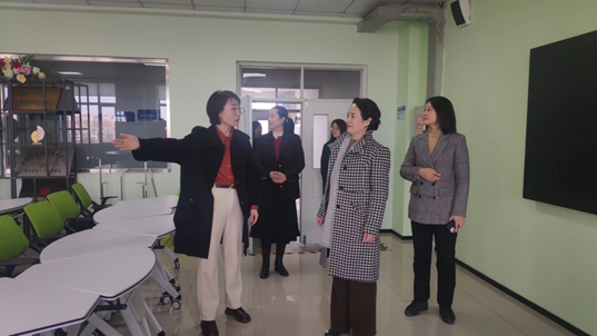 张秀丽实地考察了现代物流管理专业的智能仓储与配送中心、电商直播运营实训基地、市场营销数智企业运营实训室,详细询问了各个教学区的操作过程、观看了直播教学设备的应用效果,检查了教学设施及教学环境,了解了与企业合作的基本情况。在辅导员办公室,张秀丽深入了解学院学生工作的现状和困境。她强调,辅导员作为学生工作的中坚力量,要时刻关注学生的成长成才,做好思想政治工作,积极为学生排忧解难。