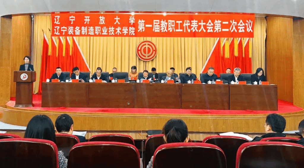 2025年3月26日,辽宁开放大学(辽宁装备制造职业技术学院)第一届教职工代表大会第二次会议在蒲河校区图书馆报告厅隆重开幕。会议以 "铸魂强基 聚势赋能 奋力书写学校高质量发展崭新篇章" 为主题,全面总结 2024 年工作成果,系统部署 2025 年重点任务,团结动员全校教职工以深化改革为主线,为辽宁全面振兴新突破三年行动贡献教育力量。党委书记王维东,校长任庆国等校领导班子成员及84名正式代表、59名列席代表和特邀代表出席会议。
